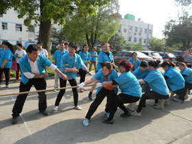 ??????? 4月30日下午4點,公司在101工房門前舉辦陽光·運動·健康——迎“五一”拔河比賽。本次活動的主題是:陽光·運動·健康。來自利達透鏡、棱鏡、電子、OLPF事業部和機關部室200多人興致勃勃的參加了比賽。