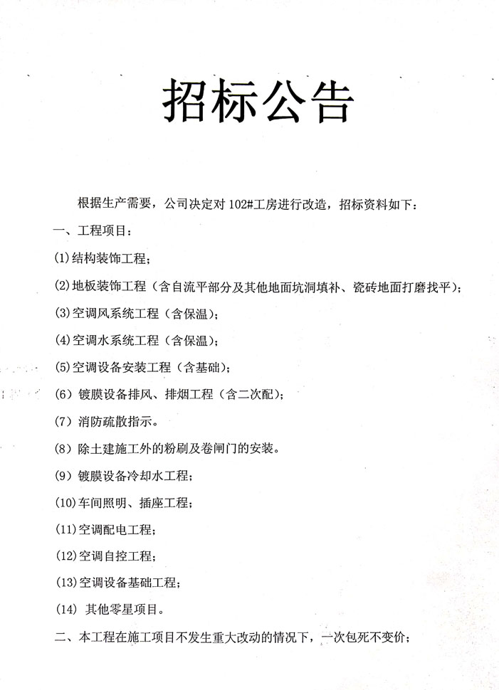 - (2022-09-29)光電新區三期廠房一層裝修施工的招標公告